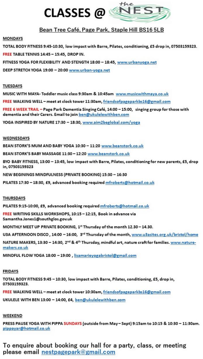 There's always great stuff happening at the Bean Tree Cafe and the Nest community room. On the Friends of Page Park website we try to promote as many events as we can, but for the full and up-to-date list please remember to check out the Bean Tree Cafe Facebook page, or better still pop in in person to enjoy a coffee and cake and ask what's on!